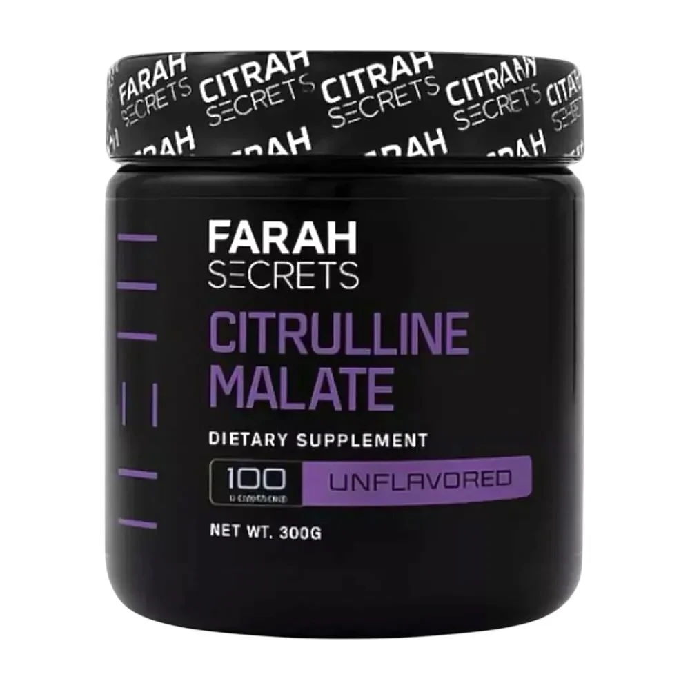 The product is a supplement containing Citrulline Malate (an amino‑acid blend: L‑Citrulline + malic acid) under the Farah Secrets brand.