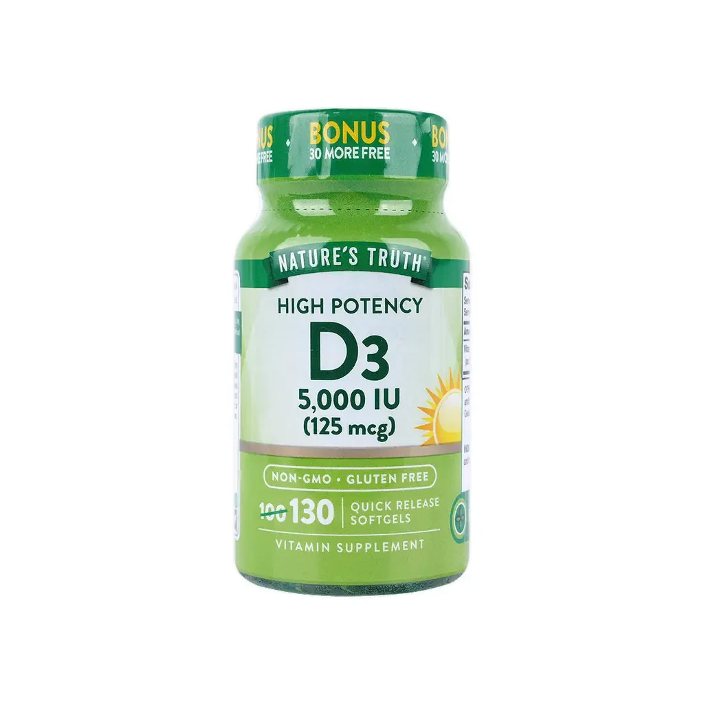Nature’s Truth Vitamin D3 normally supplies cholecalciferol (vitamin D3) — the biologically active form of vitamin D.